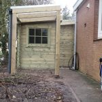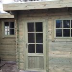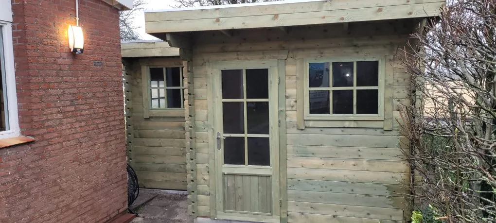 ‘’Blokhut met aanbouw veranda voorzien van polycarbonaat’’