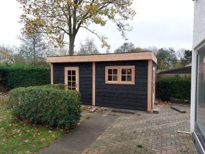 -Wanden enkelzijdig bekleed met zwart Douglas Zweeds rabat 27mm