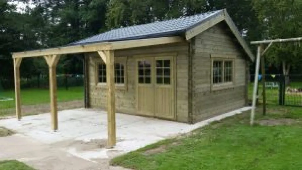 – Afmeting blokhut 540x450cm orenmaat + voorluifeltje 50cm