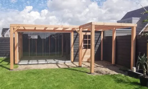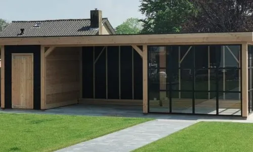 Douglas vrijstaande Berging + overkapping Maatwerk