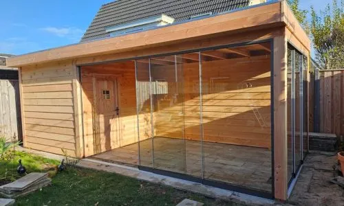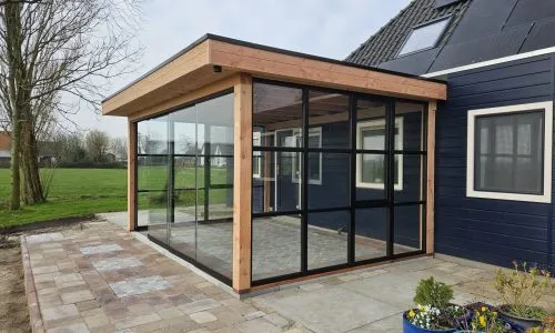 Glazen schuifwanden in bestaande overkapping