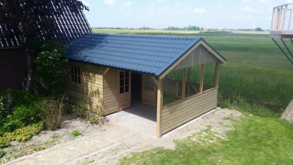 – Uitgevoerd in elementbouw, betimmerd met 19mm geïmpregneerd rabat op een hardhouten funderingsrand
