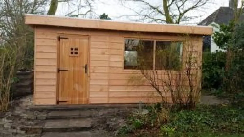 – Uitgevoerd in elementbouw met blank Douglas Zweeds rabat 27x180mm, enkelzijdig bekleed en vastgeschoten met RVS nagels op een solide vuren frame