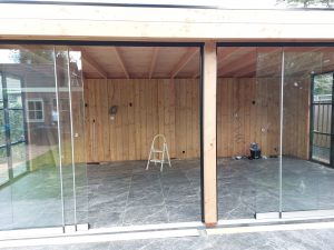 -Profiline glasschuifwanden Zwart (speciale kleur) in voorzijde 2x 350cm 4-spoor