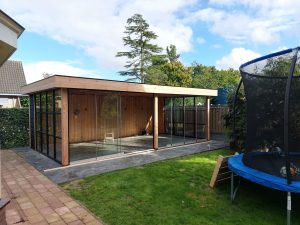 -Beide zijdes enkelzijdig ±95cm gesloten met zwart vuren Zweeds rabat 24mm zwart genageld,