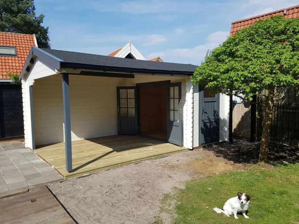 Zadeldak berging + veranda gecoat